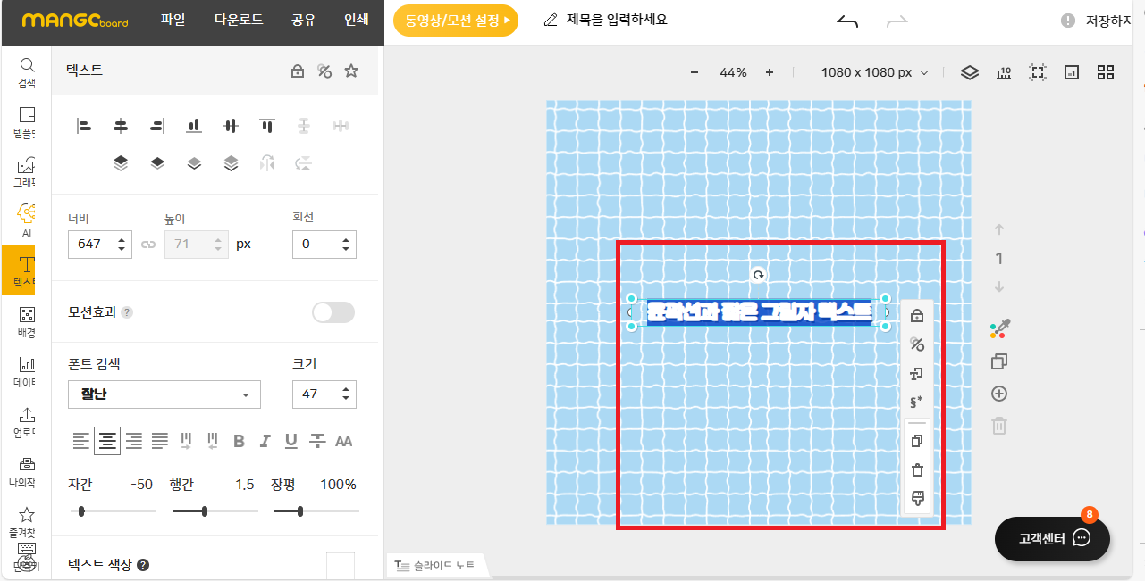 3. 망고보드에서 글씨체 선택 후 문구 작성
